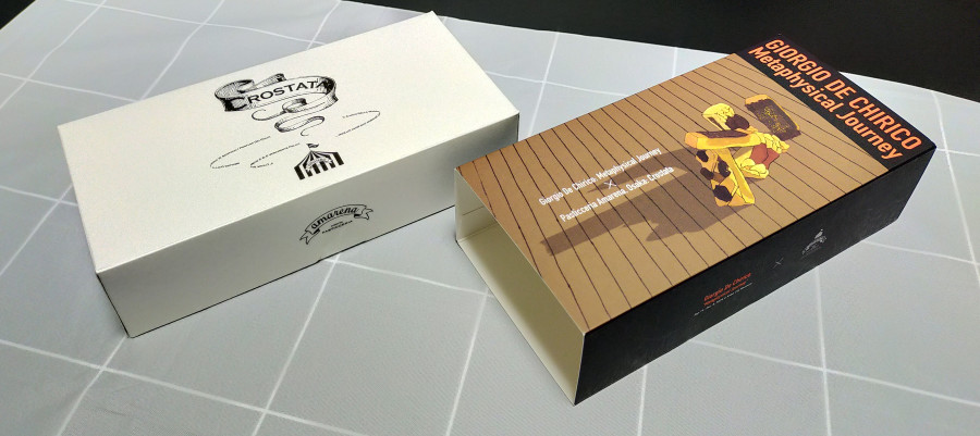 ここでコラボグッズとして販売していた、イタリア洋菓子店アマレーナの「クロスタータ」を頂きました。形而上絵画風のクロスタータを天面に配置した特別デザインパッケージと併せて、感想を記します。