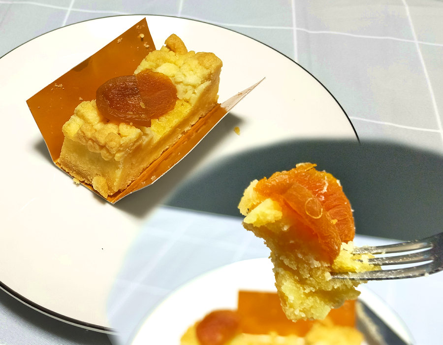柔らかいながらベリーよりも少ししっかりめの硬さで甘さのある生地に載っているアプリコット自体は、そこまで甘みは強くありませんが、杏の風味がやさしく広がります。